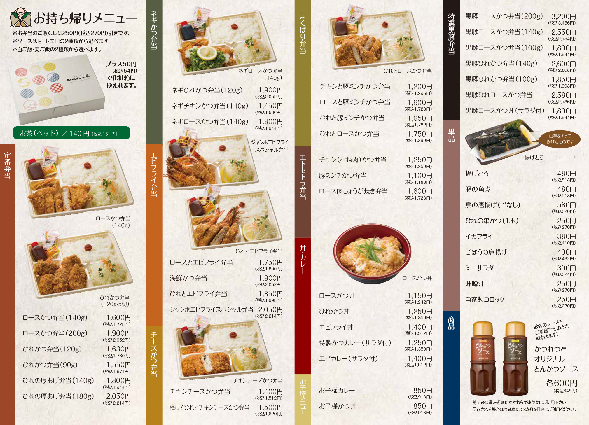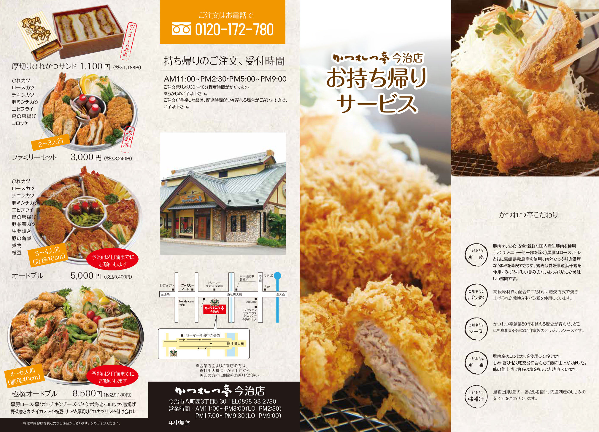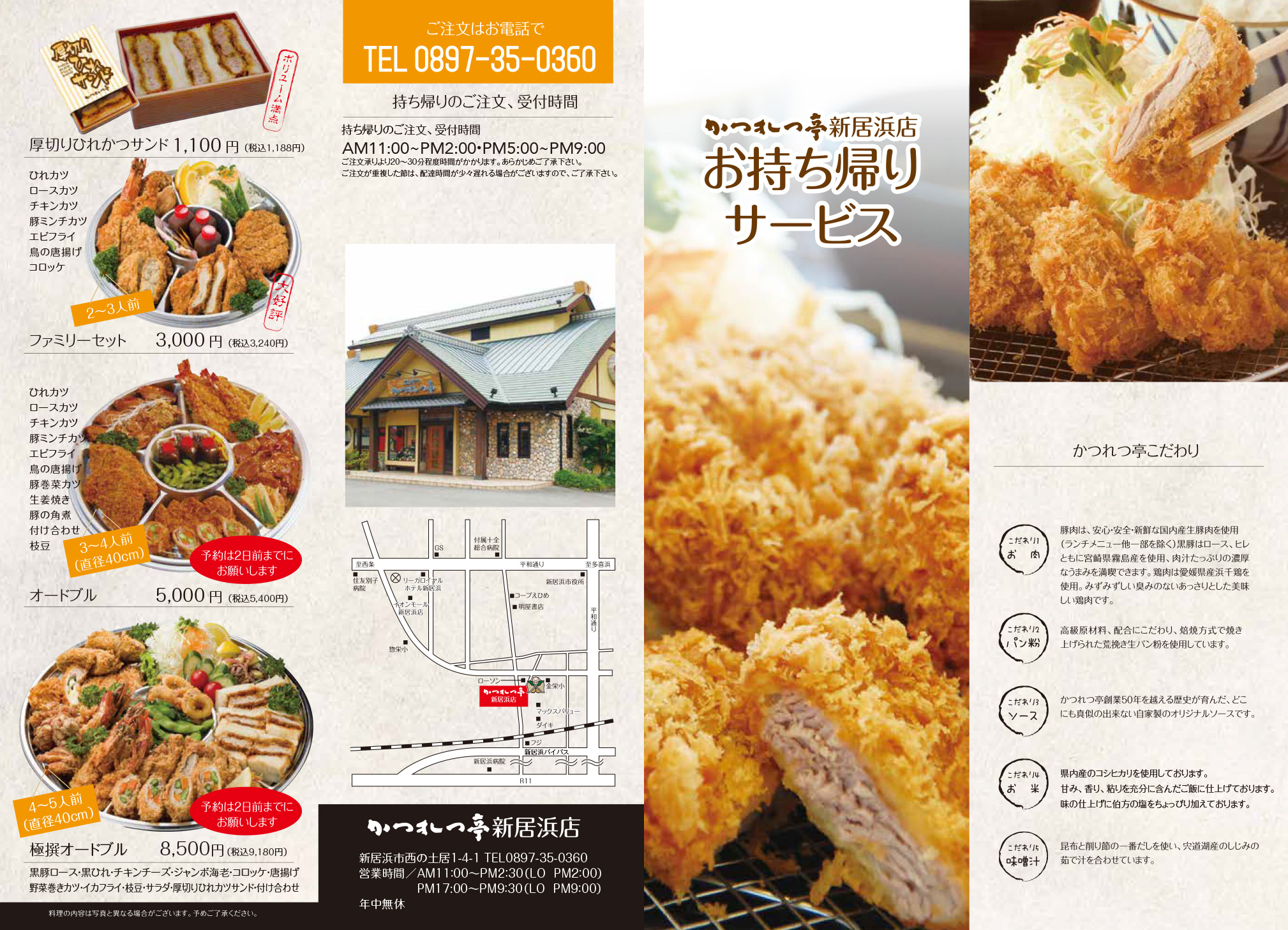 | 今治店 お持ち帰りメニュー (宅配は現在休止中) | 新居浜店 お持ち帰りメニュー | ||