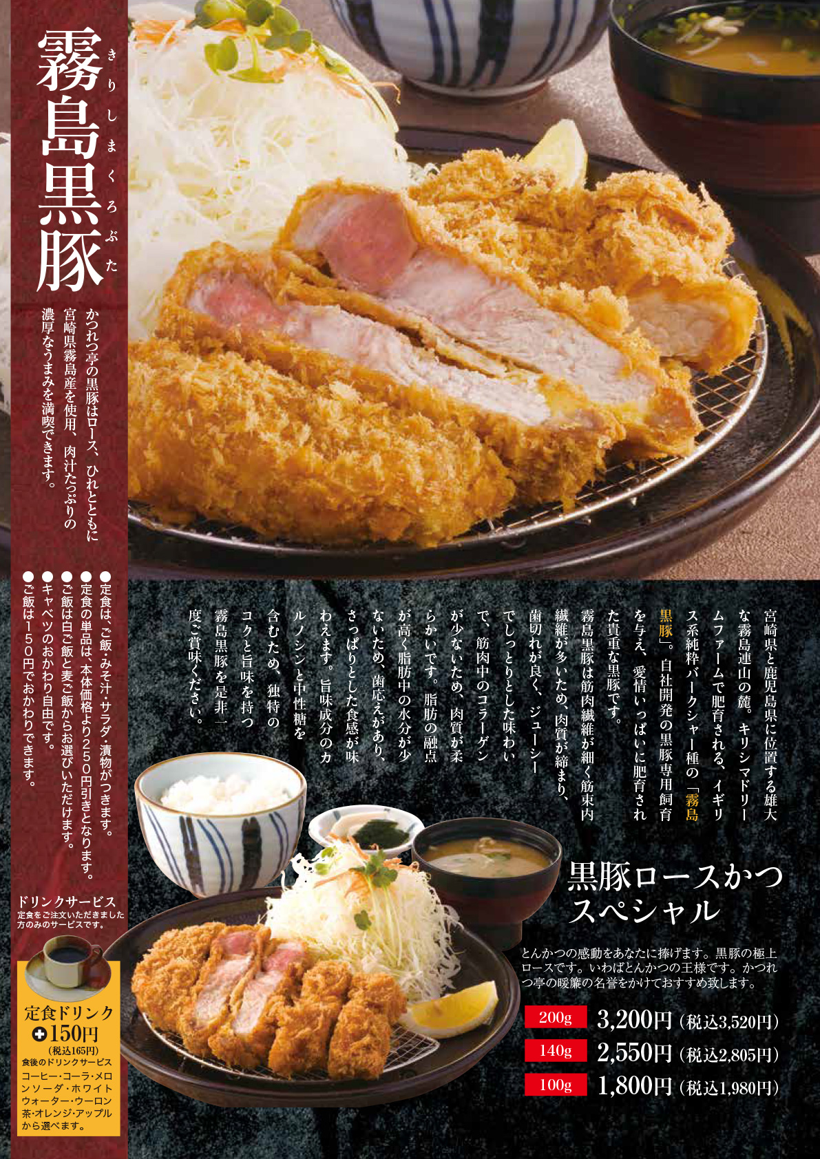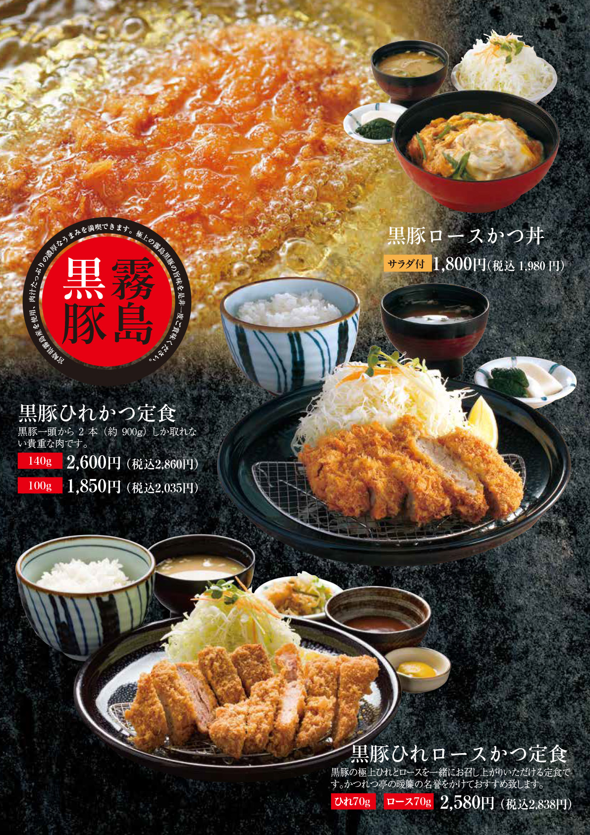 | 素材へのこだわり | メニュー表紙 | 霧島黒豚1 | 霧島黒豚2 |