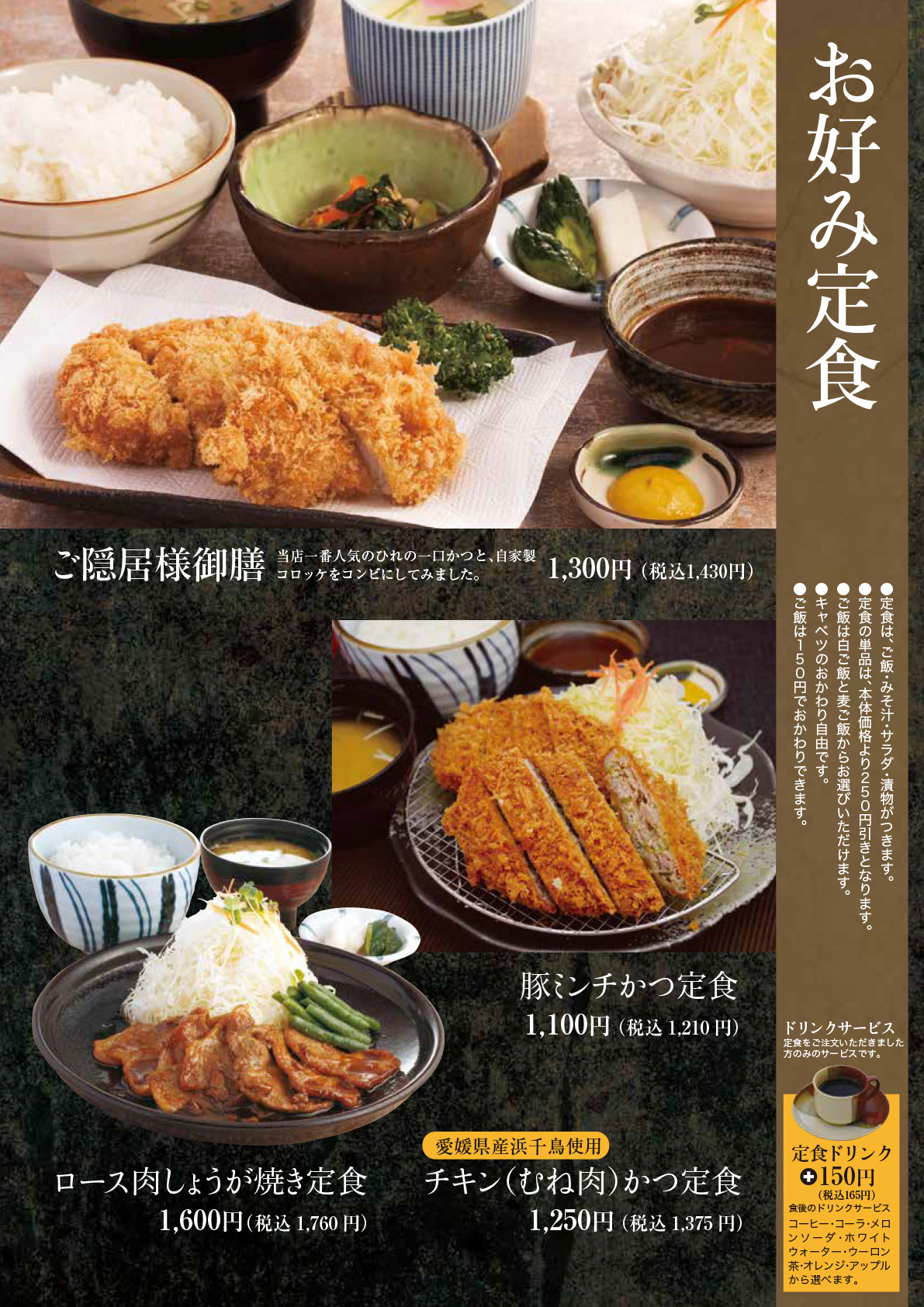 | 定番定食 | 彩り定食 | 海鮮かつ定食 | お好み定食 |