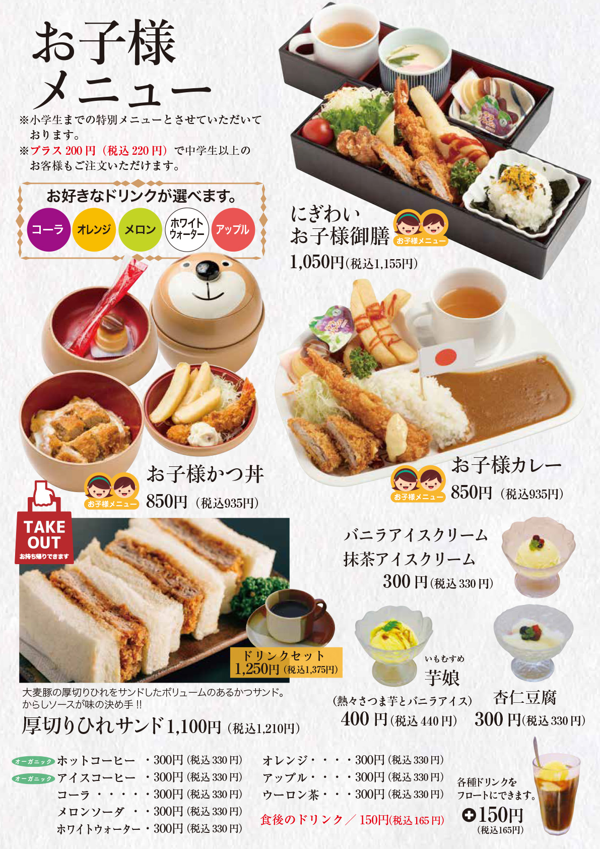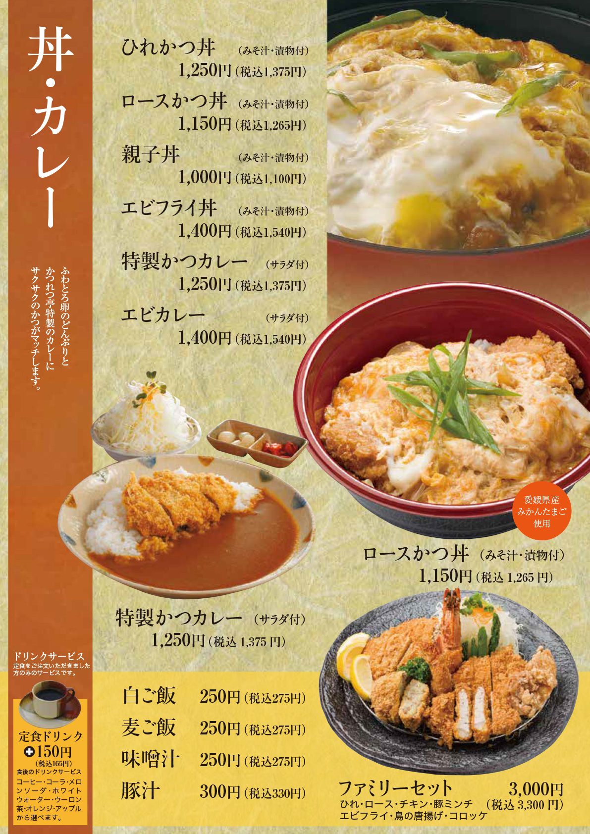 | 丼・カレー | お子様メニュー | 逸品料理 | アルコールニュー |
