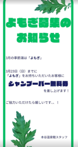 今月も従業員一同、みなさまのご来館とよもぎを
