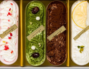 ジェラートと、生クリーム&カスタードのセミフレッドスポンジが