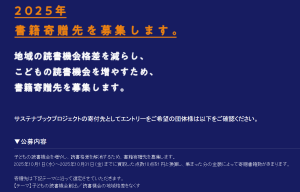 子どもの読書機会を増やし、読書格差を解消するため、書籍寄贈先を募集します。
