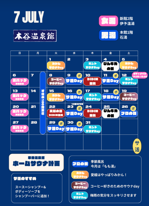 今日は愛媛県西条市の本谷温泉館からのお知らせ。