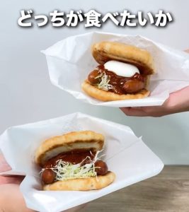 さくじゅわっの裏月見、、メンチカツチーズバーガーか。