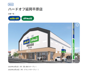 ※ハードオフ・オフハウス延岡平原店にはブックオフは併設しておりませんので、