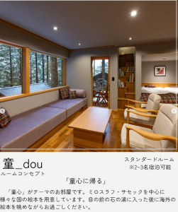 様々な絵本が並ぶ 童心がテーマのお部屋