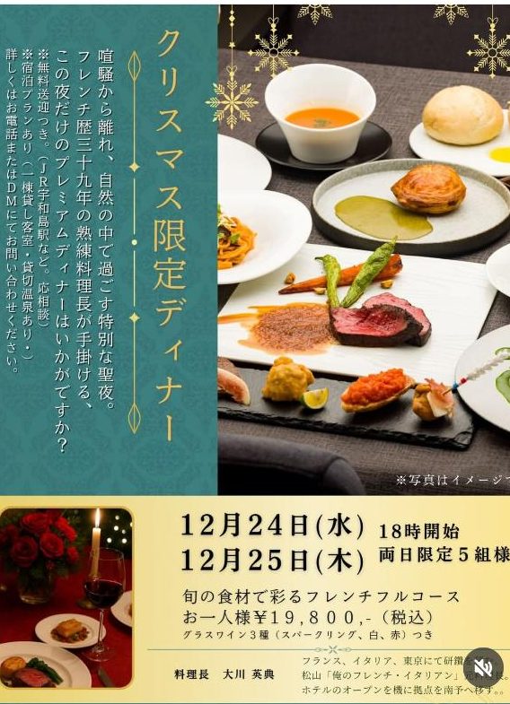 ネイチャーホテルナルカワより、クリスマスディナーのご案内です。