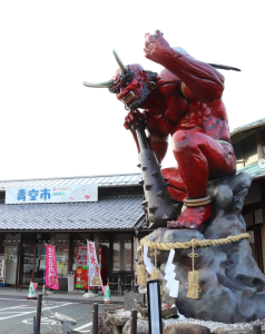 こちらの写真は、ネイチャーホテルから車で15分ほどのところにある「森の三角ぼうし」という道の駅の、鬼の大きなモニュメント。