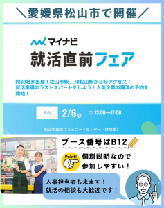 松山市にて開催されるマイナビイベント「就活直前フェア」に出展します✨