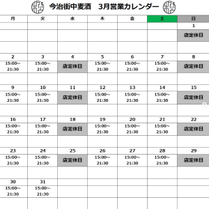 3月の営業日はこちら。ぜひ商店街の店舗まで足を運んでくださいね!